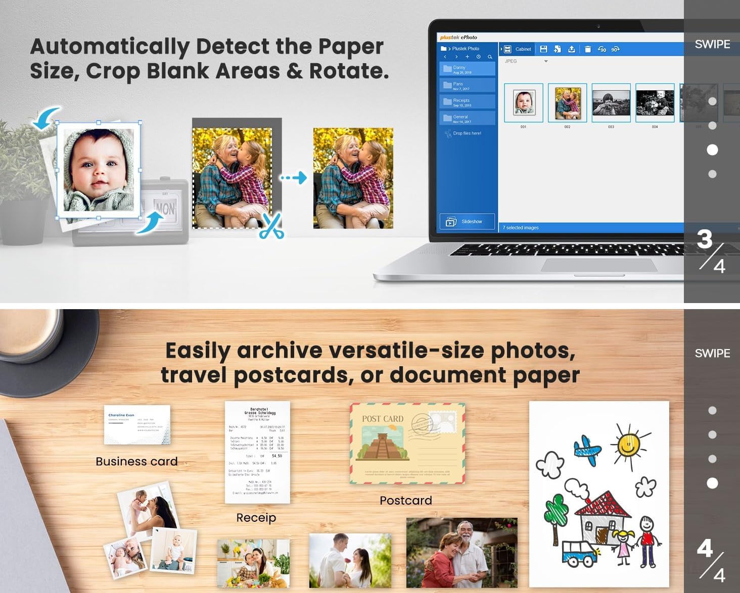 Say goodbye to manual adjustments with the ePhoto Z300’s automatic crop and deskew features, which help streamline your scanning process and save you valuable time. Whether you’re using a Mac or PC, this scanner is compatible with both operating systems, providing versatility and convenience for all users.